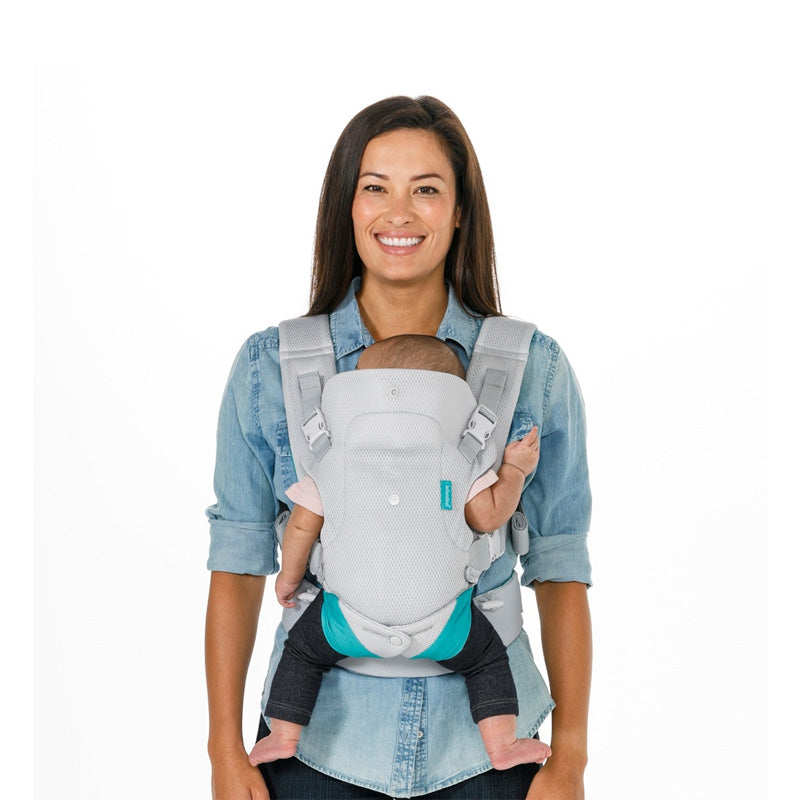 0+ თვიდან (3.5 კგ) – ბავშვი ჩასვათ სახით მშობლისკენ, 3 თვის შემდეგ – სახით წინ