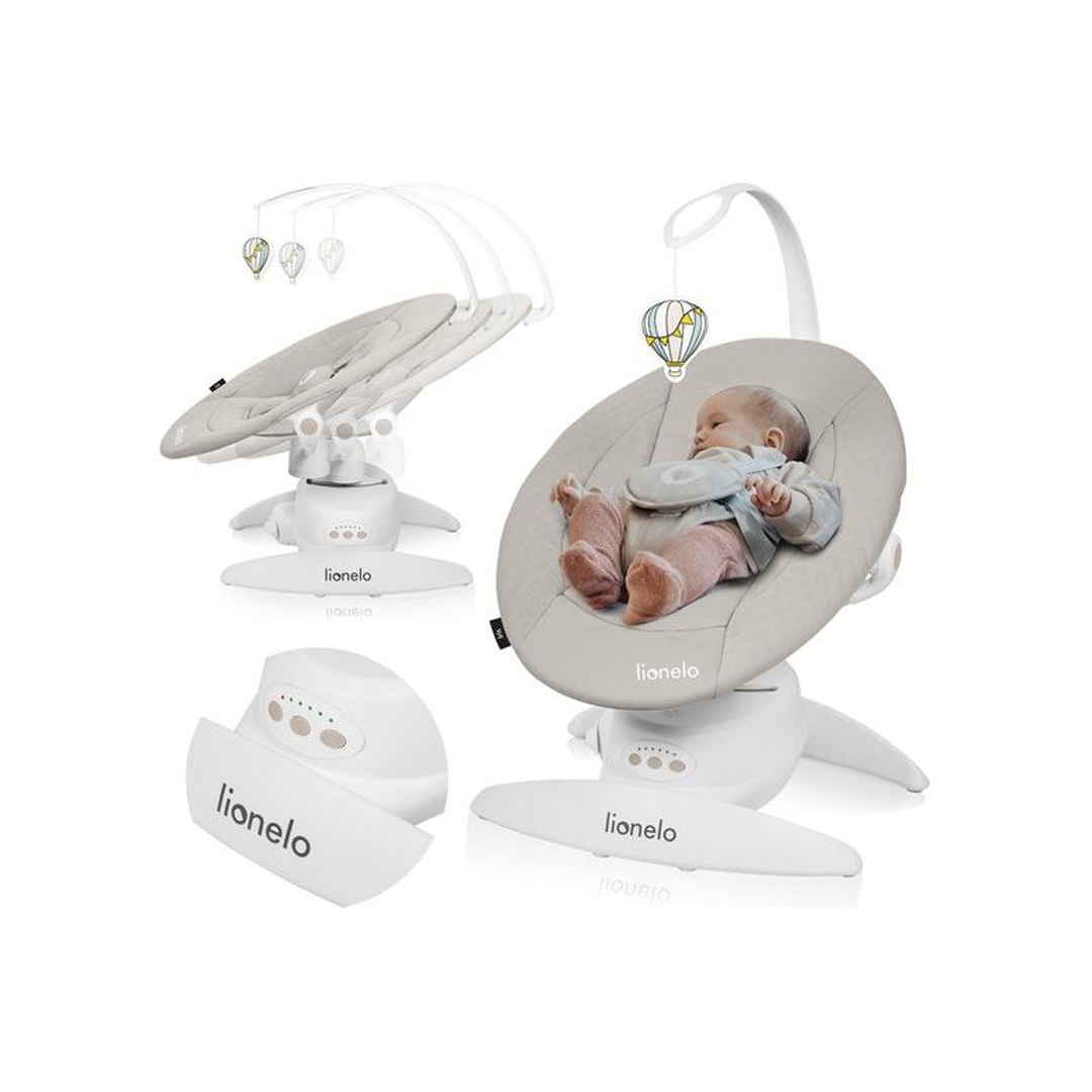 ელექტრო ბაუნსერი LIONELO: აღჭურვილია კომფორტული, ერგონომიული ფორმის სავარძლით, რომელიც უზრუნველყოფს ხერხემლის სათანადო განვითარებას. აქვს 2 სილიკონის მბრუნავი წინა ბორბალი, 360° მბრუნავი, რომელიც არ აზიანებს იატაკს, 2 რეზინის ფიქსირებული ბორბალი კი უზრუნველყოფს უკანა მხარეს მეტი უსაფრთხოებისთვის.